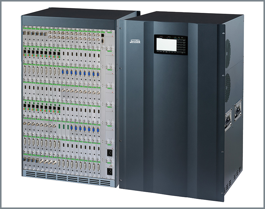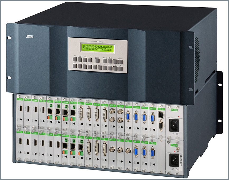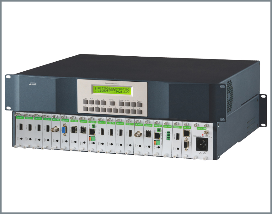 4K高清混插矩陣是?款最高支持4KP30的單路單卡混合插卡矩陣,通過(guò)框架的模具+模塊化、內(nèi)部結(jié)構(gòu)的 專(zhuān)業(yè)化+智能化、電氣線路的優(yōu)化+標(biāo)準(zhǔn)化等手段,匠心設(shè)計(jì),鍛造出的?款外形美觀漂亮、結(jié)構(gòu)合理牢固、性能優(yōu)越穩(wěn)定 的4K高端無(wú)縫切換矩陣。整個(gè)系列分五個(gè)19英寸標(biāo)準(zhǔn)機(jī)型,分別是2U的9 x9、4U的18 x18、8U的36 x36、17U的72 x 72和32U的144 x144。此系列4K無(wú)縫切換矩陣,將智能化、網(wǎng)絡(luò)化、模塊化、數(shù)字化和音頻加解嵌技術(shù)融為?體,采用最經(jīng)濟(jì)的單路單卡 結(jié)構(gòu),每通道帶寬為18Gbps的四總線設(shè)計(jì),采用4:4:4無(wú)壓縮的采樣技術(shù); 6英寸1920 x1080顯示器及多點(diǎn)電容觸摸屏,具有強(qiáng)大的交互式觸摸控制功能和點(diǎn)對(duì)點(diǎn)監(jiān)視1080信號(hào)的功能;通過(guò)兩者配合,方便在工地現(xiàn)場(chǎng)對(duì)系統(tǒng)進(jìn)行檢測(cè)、調(diào)試。 最高支持4KP30信號(hào)無(wú)縫切換輸出,具有上、下變換的無(wú)縫切換功能,兼容HDMI1.4和3D信號(hào)。同時(shí),也可配置相對(duì)經(jīng)濟(jì)的快切輸出卡,配置靈活多樣。輸入可選CVBS、Y'PBPR、VGA、DVI(兼容HDMI)、 3G-SDI(向下兼容HD和SD)、6G-SDI(向下兼容)、HDMI、2K- Fiber、4K-Fiber、HDBaseT等接口形式。4K及下變換的?縫輸出通過(guò)HDMI?縫卡+所需接?轉(zhuǎn)換器?式;經(jīng)濟(jì)的快切輸出卡為最??持4K的透?jìng)骺?,支持的接口有:HDMI (兼容DVI)、Fiber、HDBaseT、SDI等。